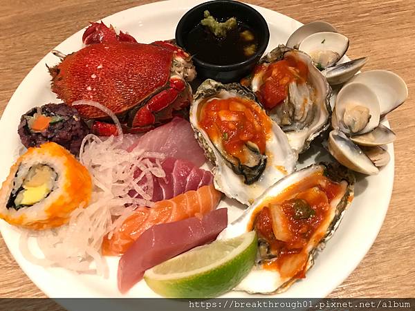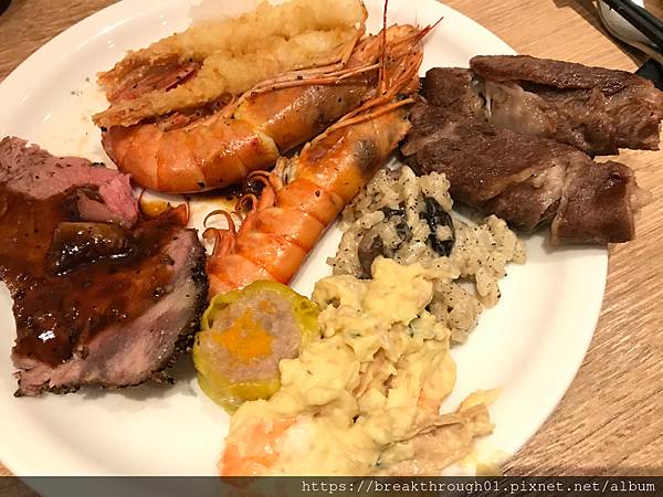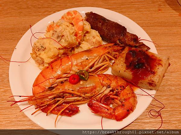 還有一道在沙拉區旁邊會有師傅現場用噴槍烤牛肉,一定要拿(抱歉我已經忘記菜名QQ….),大概排了三四次有。而且那師傅非常講究,他會希望你盤子上不要裝滿雜七雜八的食物用一個新的盤子裝。