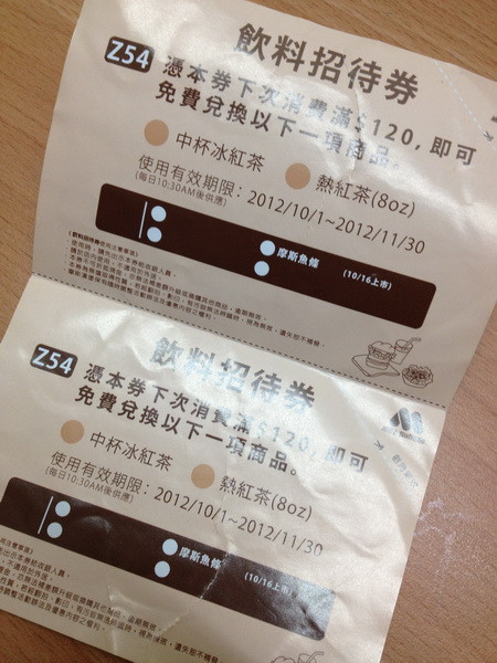 某次在北車轉運吃早時送的優換券,本來以為是廣告單想把他給丟了